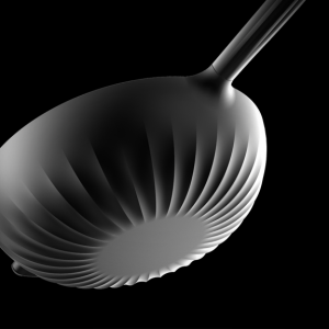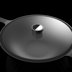 鍋具的設(shè)計是解決問題的一個關(guān)鍵點。受熱不均勻,熱效率低等都造成浪費資源和油煙重的問題。這套鍋具定位高端,本身材質(zhì)采用鋁合金,是具有高導(dǎo)熱系數(shù)的材料。鍋底的紋理在增加了鍋底與火焰的接觸面積的同時更是起到了平均分配熱量的作用提高了導(dǎo)熱效率也使得鍋底受熱更加均勻,有效的控制了油煙。鍋蓋把手上的孔洞有透氣的功能,且能夠根據(jù)不同的食材和烹飪的不同要求調(diào)整大小。凸顯雕塑感的紋理符合高端生活的氣質(zhì)。鍋底的紋理,把手的紋理,鍋蓋把手的紋理,雖然功能不一樣卻同樣在設(shè)計上具有一致性。處于家族感的考慮,煎鍋與炒鍋在局部都用了統(tǒng)一的形式語言。